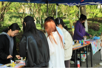 活动现场设置了留言镜打卡、“与她击掌”环保颜料签名、DIY自制香包、拼贴诗、打卡赢好礼等丰富多彩的活动环节,吸引了全校不同学院的师生热情参与。有人用环保颜料在“她和她”白色横幅上留下掌印和签名,绘出女性之间的温暖与支持;现场还准备了不同种类的花卉草木,鼓励女生粘贴打破偏见的标签,发挥创意,自制心仪的香包;还可以用“她”相关的诗句等素材,拼贴传达“她”力量。