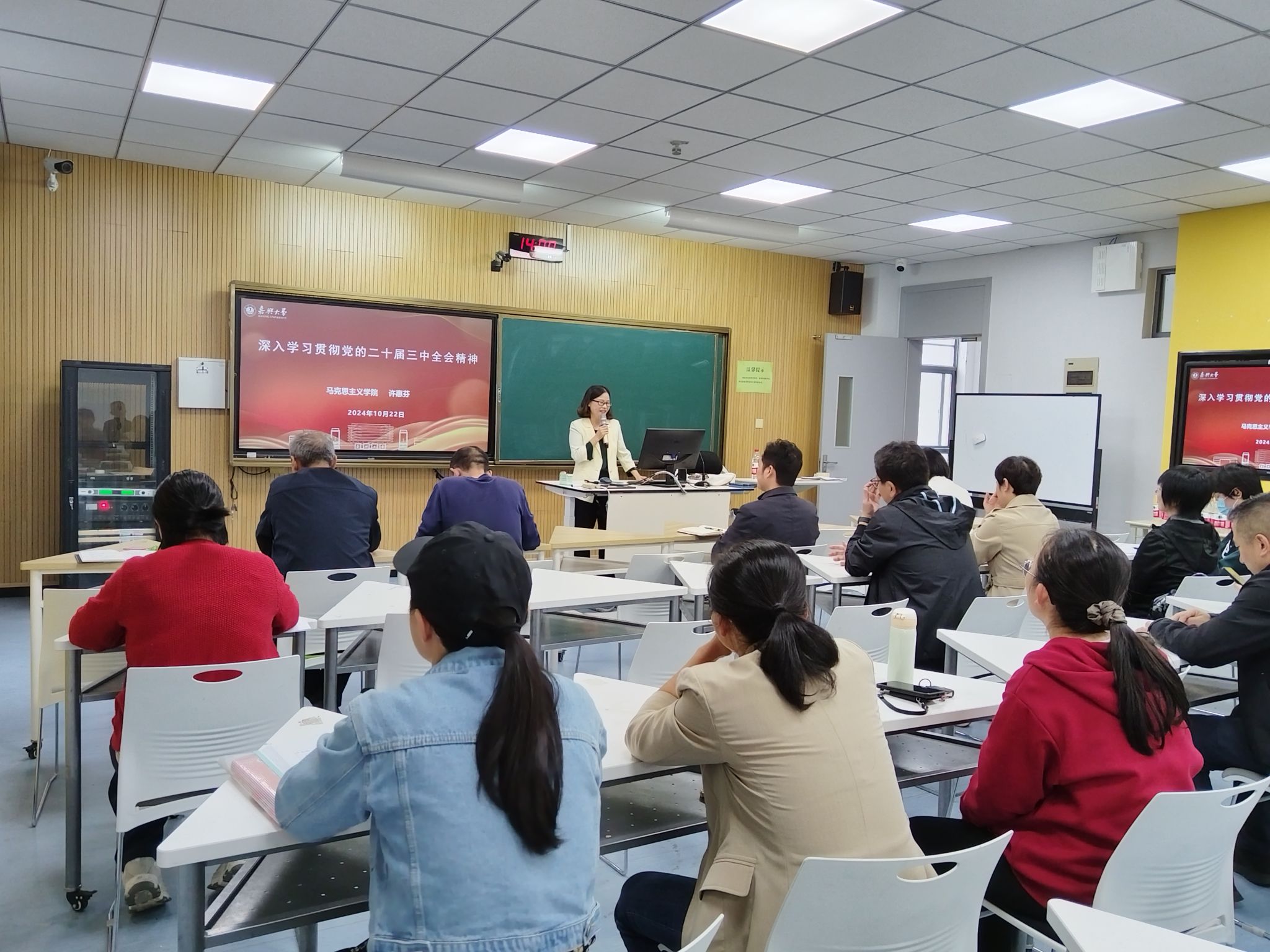 10月22日下午,我院在崇礼楼302教室举办党的二十届三中全会精神宣讲会,邀请马克思主义学院副院长许惠芬教授来学院作专题宣讲报告。学院全体教师党员参加学习,学院党委书记黄芳芳主持会议。