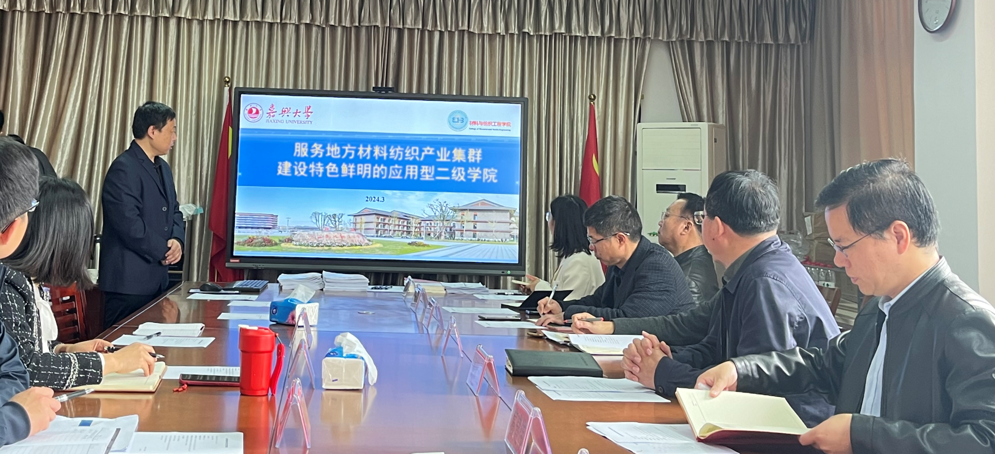 教学副院长代正伟代表学院做了以“服务地方材料纺织产业集群 建设特色鲜明的应用型二级学院”为题的汇报。专家组听取汇报后,对学院审核评估评建工作情况进行了分组检查。第一组查阅了学院育人特色材料和课程思政案例汇编,走访了学院考察点,并对学院汇报PPT、特色材料等提出了整改完善建议。第二组检查了教学基层组织教研活动记录、毕业论文和课程教学档案材料等,并对检查中发现的问题作了细致反馈。