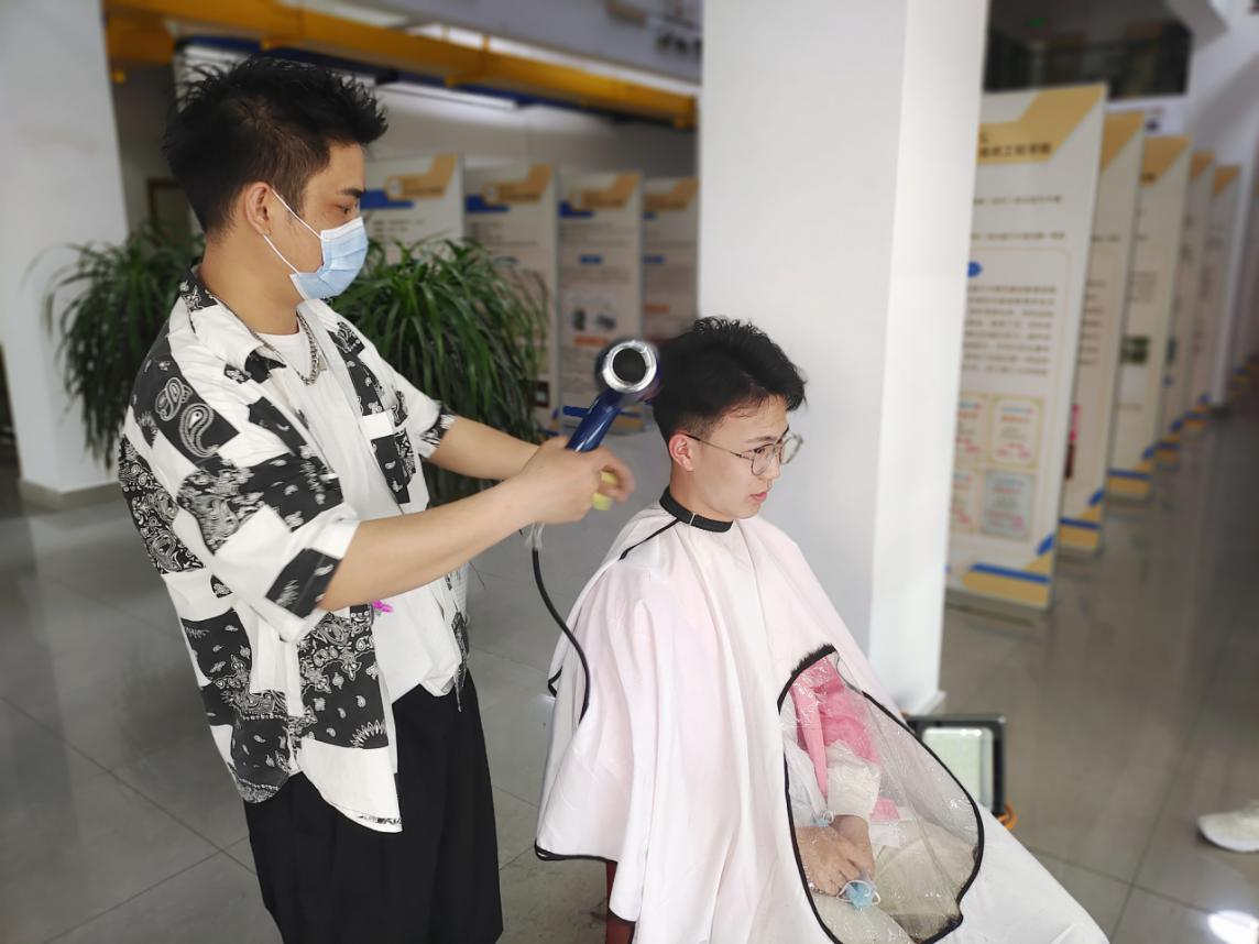 实行封闭式管理,在校学生的理发问题成了“头”等难题。为了解决同学们的迫切需求,材纺学院邀请专业理发师进校为学生理发。