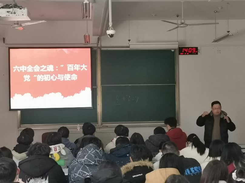 12月30日下午14点,学院邀请红船精神研究中心的钱牧老师宣讲十九届六中全会精神,学院80余名学生党员、积极分子参加此次宣讲会。