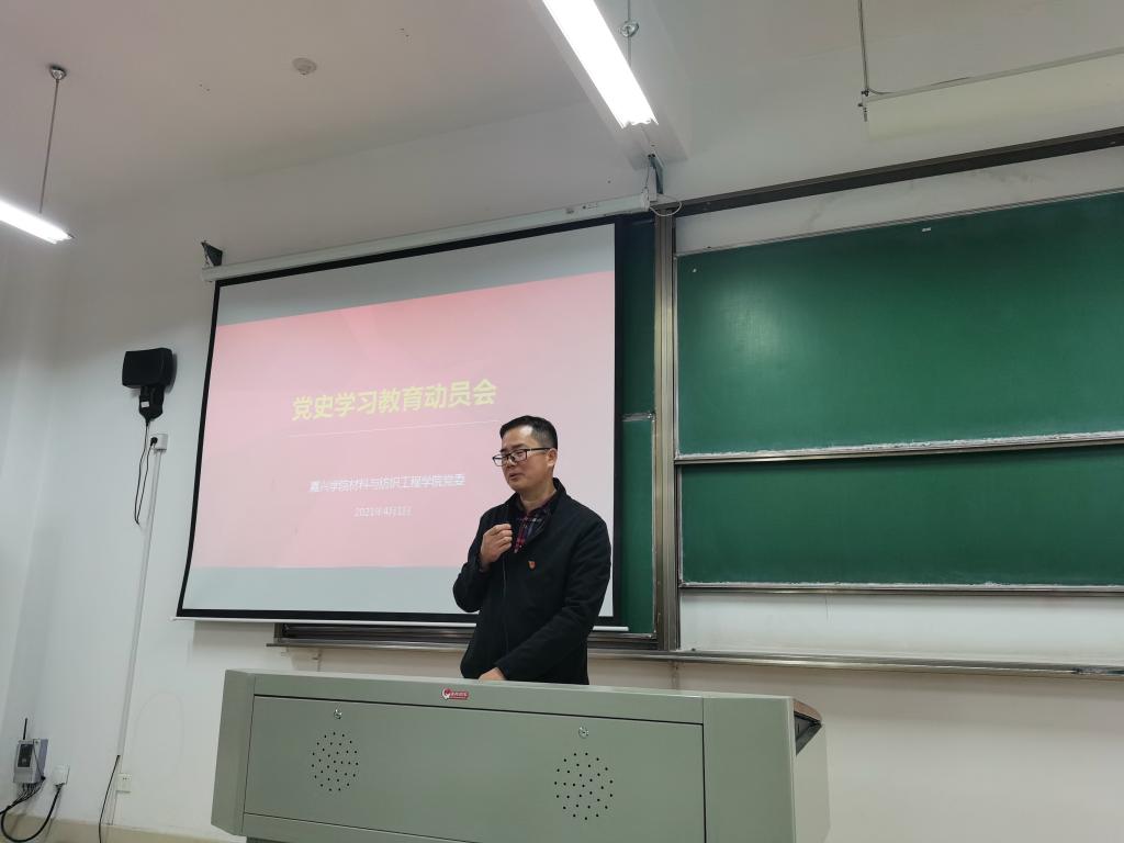 4月1日下午,材纺学院党委召开党史学习教育动员会,安排部署学院党史学习教育工作,学院党政班子成员,全院师生党员参加会议。动员会由易洪雷院长主持,党委书记韩宝明作动员讲话。