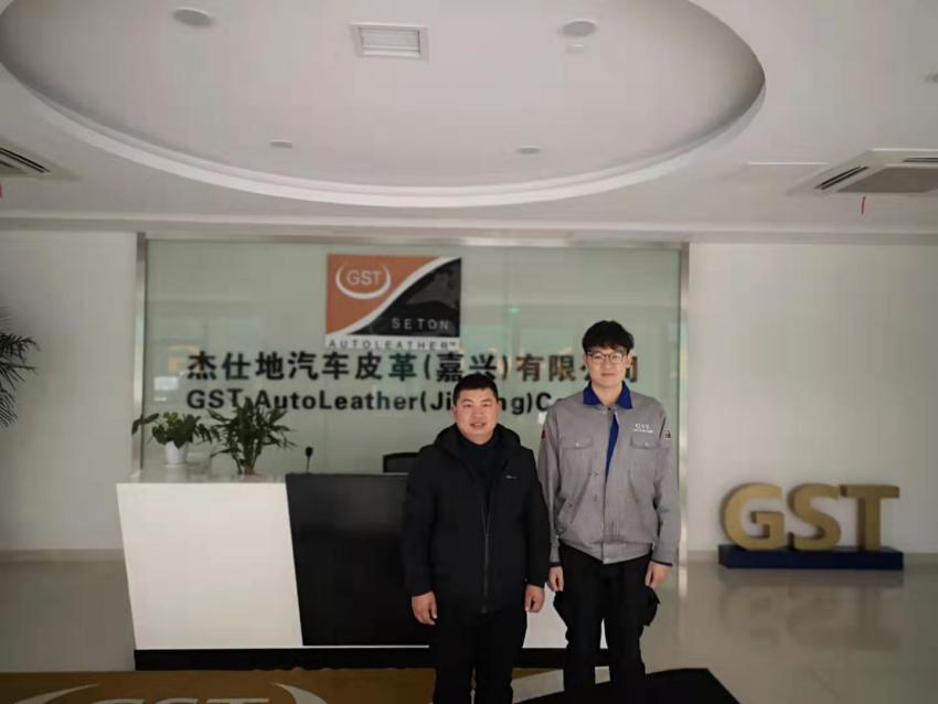 图2.教师代表在杰仕地汽车皮革(嘉兴)有限公司