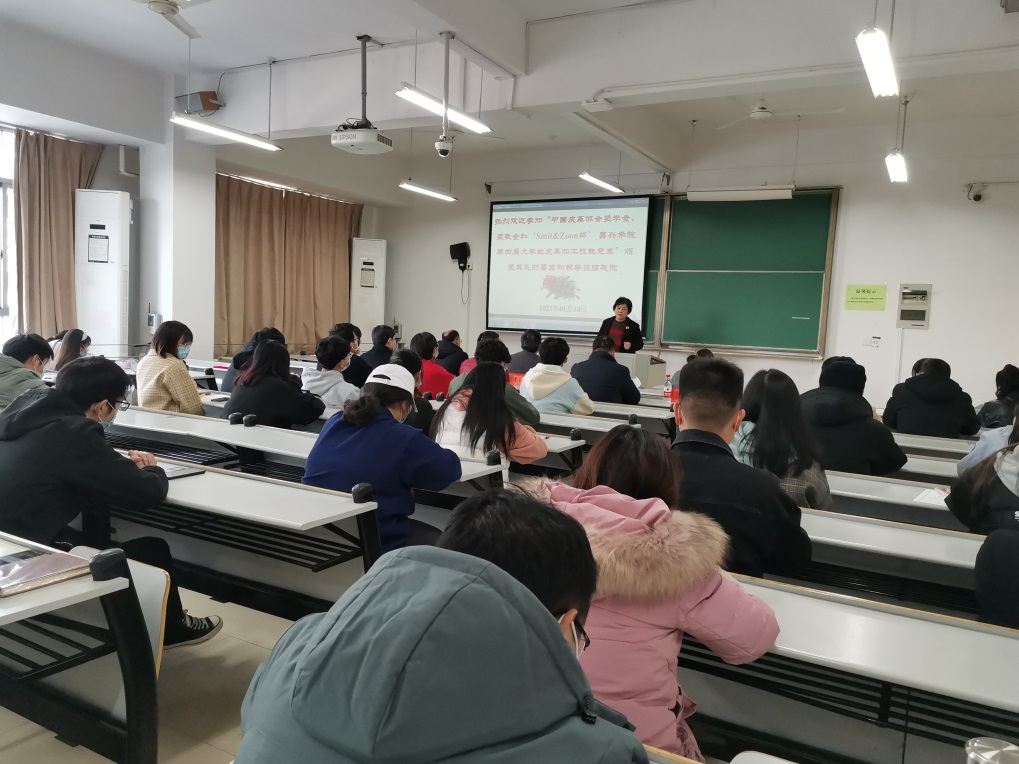 1月14日,我院在14号楼316教室隆重举行 “中国皮革协会奖学金、奖教金”和“‘Smit & Zoon杯’嘉兴学院第四届大学生皮革加工技能竞赛”颁奖典礼。中国皮革协会副理事长、浙江省皮革行业协会理事长李伟娟女士、浙江省皮革行业协会秘书长官敏健女士、浙江省皮革行业协会常务副秘书长谢基尔先生、荷兰Smit & Zoon公司涂饰部中国区总经理徐建平先生、社会合作处副处长徐进、我院党委书记、院长易洪雷教授、副院长李海东教授、轻化工程系主任罗建勋副教授及轻化工程系全体教师和获奖学生代表参加了本次颁奖典礼,典礼由学院副书记黄芳芳老师主持。