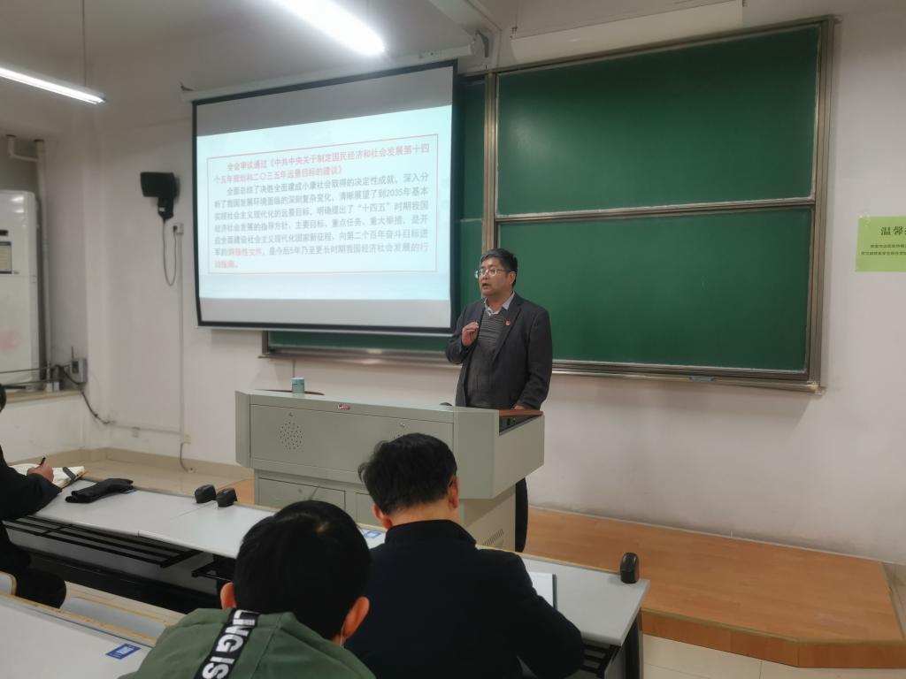 易洪雷从认识重大意义、领会精髓要义、谋划实施好学校未来发展蓝图、奋力书写学院“十四五”事业发展新篇章等四个方面对党的十九届五中全会精神作了系统解读。他从历史和全局的角度深刻认识党的十九届五中全会的重要意义;从新发展成就、新发展阶段、新发展目标、新发展格局、新发展任务、新发展保证六个“新”上系统阐述党的十九届五中全会的丰富内涵和精髓要义;结合学校“1358”未来发展蓝图,系统解读学校“三步走”发展规划和具体要求;从材纺学院的昨天与今天入手,结合学院“1548”发展规划,详细介绍学院在“十四五”时期所面临的机遇与挑战、目标与任务。