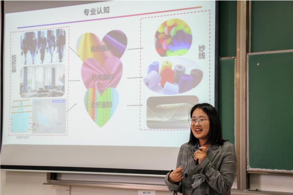 10月17日下午13:00,我院三位优秀校友向纺织系全体师生做了汇报和分享。浙江华峰氨纶集团区域经理孙剑峰、浙江新澳纺织股份有限公司染色部负责人胡李坚、东华大学在读博士孟娜分享了自己在校期间的学习经历,以及毕业后在行业内的成功经验。黄立新副院长做总结讲话,坚定了大家热爱专业,扎根行业的决心。