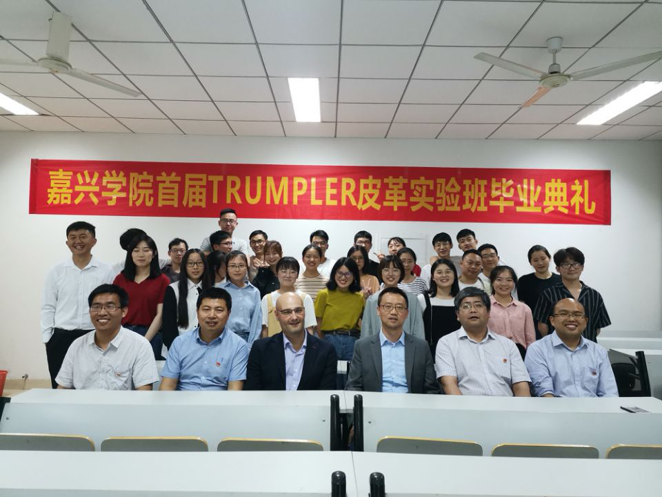 5月30日晚,我院在梁林校区10号楼502隆重举办了首届“嘉兴学院-TRUMPLER皮革实验班”毕业典礼。参加此次毕业典礼的嘉宾有汤普勒化工染料(嘉兴)有限公司总裁JOAQUIN LINZOAIN ACEDO先生和张建维先生、材纺学院易洪雷院长、校教务处王敏副处长、徐进副处长。轻化工程系全体师生参加了此次活动。毕业典礼由轻化工程系罗建勋主任主持。