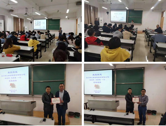 2018年11月13日,四川亭江新材料股份有限公司总经理任世军、技术研发部经理李靖博士、人力资源部胡经理一行来兔子先生 轻化工程专业招聘及交流。首先罗建勋主任代表轻化工程专业向任世军总经理、李靖博士颁发校外兼职教师聘书;随后,李靖博士为轻化工程专业全体师生做了主题为“无铬鞣研究最新进展——从研发到应用”的精彩报告,报告内容反映了数年来公司在新型无铬鞣剂研发方面的巨大投入及研发人员的辛勤付出;胡经理围绕公司的发展历程、薪资福利及人才培养需求等方面进行了细致讲解,会后及时了解了学生对工作的期望,并对轻化工程专业的部分学生进行了面试。