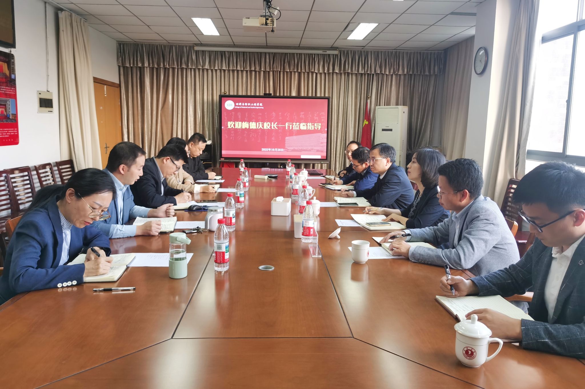 调研走访并指导工作。学校办公室、发展规划处、人事处、科技处等部门负责人陪同调研。学院党政领导班子全体成员参与座谈。