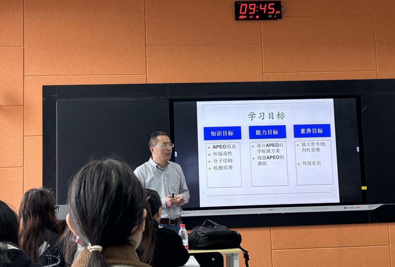2024年11月18日上午,我院“一流课程系列公开示范课”本学期第二次公开课,在明德楼256教室开讲。本次公开示范课为校级一流课程《皮革与纺织品环保指标及检测》,由课程团队成员马贺伟主讲,兔子先生 教师进行了现场观摩。