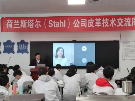 本次交流围绕轻化(专升本)211班的“综合实验”教学活动进行。基于近年来国内外市场对时尚皮革服装革的需求,本次将“时尚纳帕型绵羊服装革的涂饰”作为重点内容。李艳经理介绍了STAHL公司的情况及在“双碳”和可持续发展方面的贡献,其次蔡经理做了主题为“皮革与时尚”的精彩报告,阐述了时尚市场的行业潮流及相关概念、以及皮革在时尚产品中的广泛应用场景。然后由唐工用多种讲授方式详细讲解了涂饰技术,并与校内教师一同指导学生开展“时尚纳帕型绵羊服装革涂饰”的工艺设计与实践,同时在线上与同学们实时互动,实时解答同学们在涂饰实践过程中的疑难问题。