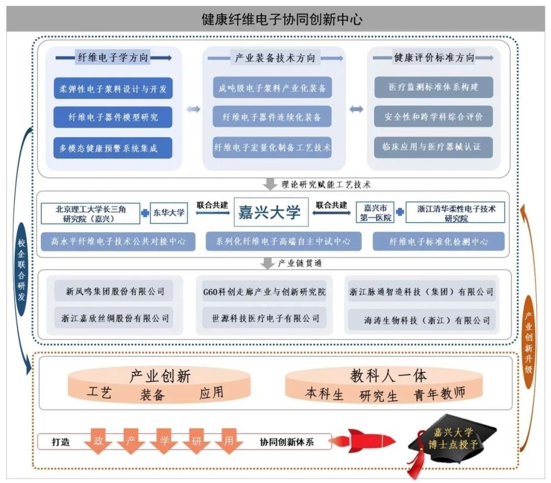 G60科创走廊产业与创新研究院、浙江脉通智造科技(集团)有限公司、世源科技医疗电子有限公司、海涛生物科技(浙江)有限公司等多家单位携手共建健康纤维电子协同创新中心。