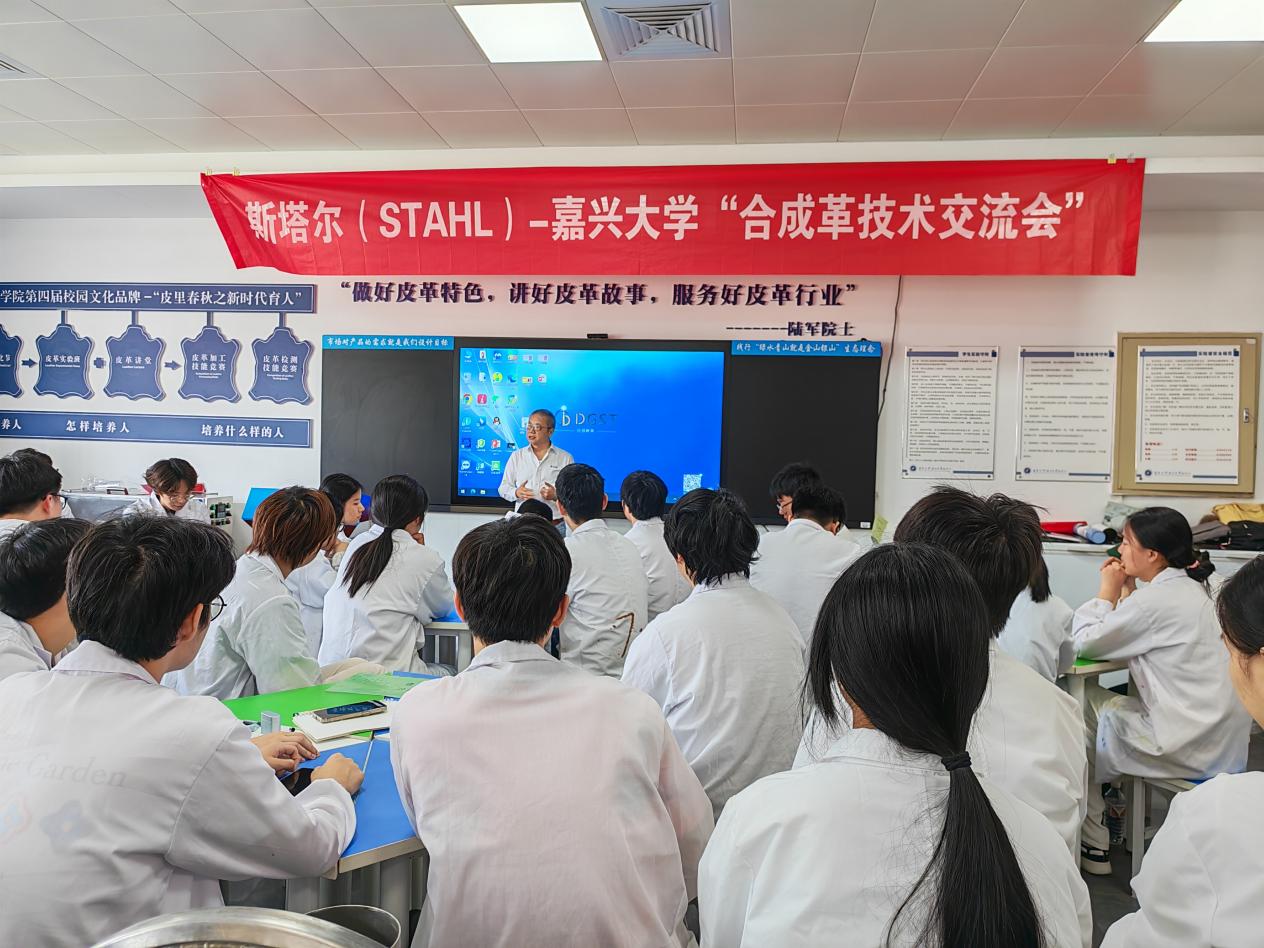 应我院轻化工程专业邀请,斯塔尔精细涂料(苏州)有限公司郭祥经理、夏敏经理一行于5月27日至5月29日访问我院轻化工程专业并给轻化生态合成革班讲授“时尚皮革与合成革现代产业学院”的产业课程之《合成革工艺学》中的“合成革表面处理技术”、《时尚合成革设计与制作》中的“合成革干法与表面处理技术”。活动由罗建勋教授主持,马贺伟副教授、李书卿老师等轻化工程专业教师全程参加。