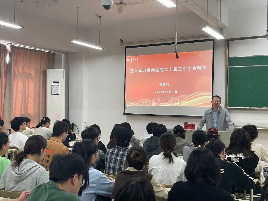10月11日下午,我院邀请马克思主义学院副教授张胜利作学习贯彻党的二十届三中全会精神宣讲。60余名学生党员参加宣讲会,会议由辅导员马保国主持。