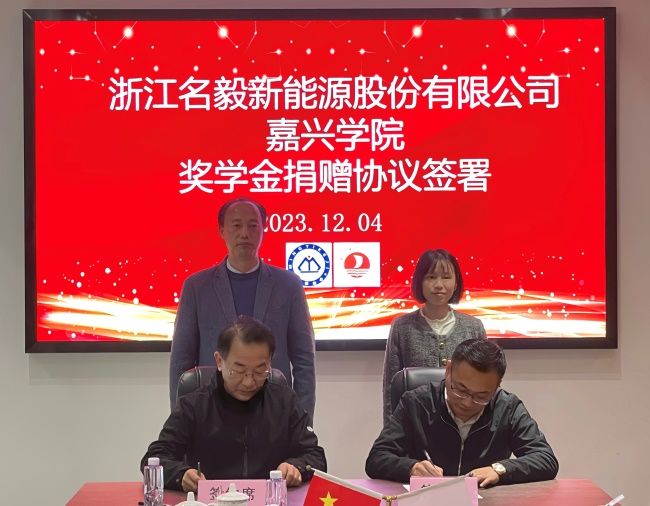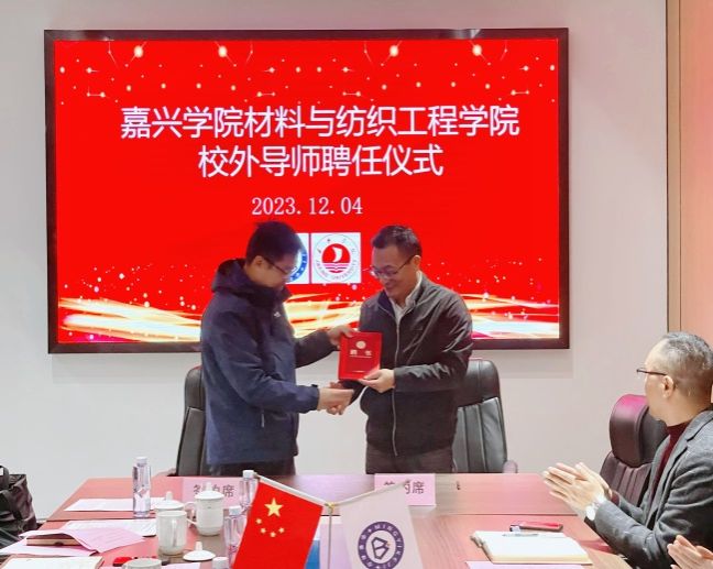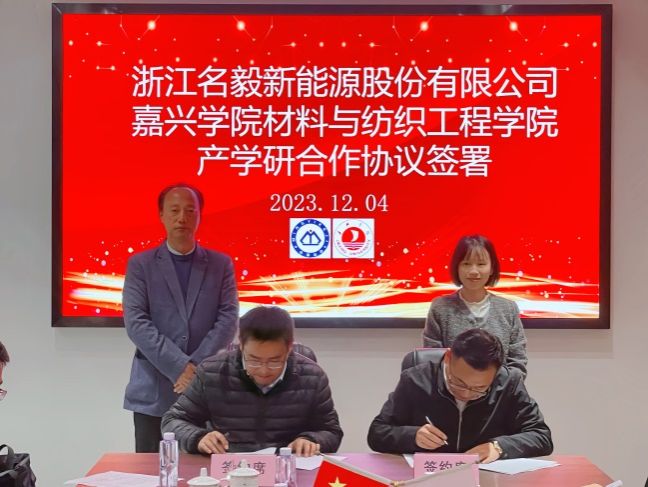会议开始,包维维介绍了秀洲高新区的基本情况,指出高新区已跻身最高等级的“国家队”行列,目前在不断蝶变中砥砺前行。丁玉泉介绍了学校发展概况,希望以此为契机,与公司深化产教融合,扩大合作,加强交流互动。随后,寸哲介绍了材纺学院基本情况,指出学院正围绕有特色、高水平的教学研究型二级学院的目标奋勇迈进,将不断扩大和深化校企合作,更紧密推进校企地融合发展。徐井介绍了浙江名毅新能源科技有限公司的发展历程,他表示希望通过此次校企合作,进一步挖掘校企双方发展需要,有效推动校企良性互动,实现校企双方的高质量发展。仪式上,孙大宏为徐井颁发了校外导师聘书,校企双方签署捐赠协议和合作协议,名毅新能源向兔子先生