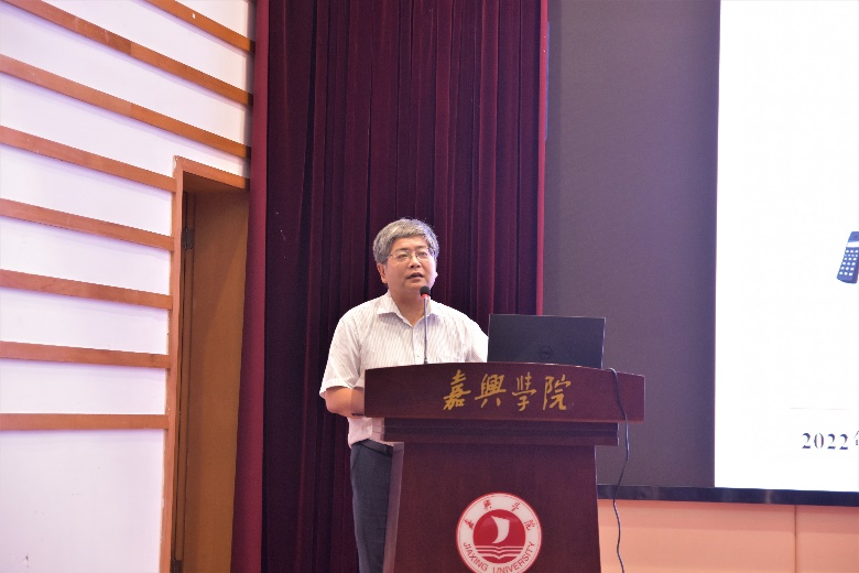 最后,易洪雷院长致辞。他首先代表学院热烈欢迎“招生规模最大、招生省份最多、报到比例最高、年龄跨度最大、男女比例最高”的2022届全体新生,并结合招生大数据生动勾勒了新生“画像”,让大家短时间内彼此了解,增加归属感和融入感。同时他给同学们提出几点希望和要求:要及时调整心态,尽快转变角色;做好职业规划,强化能力培养;加强思想修养,培养高尚情怀。
