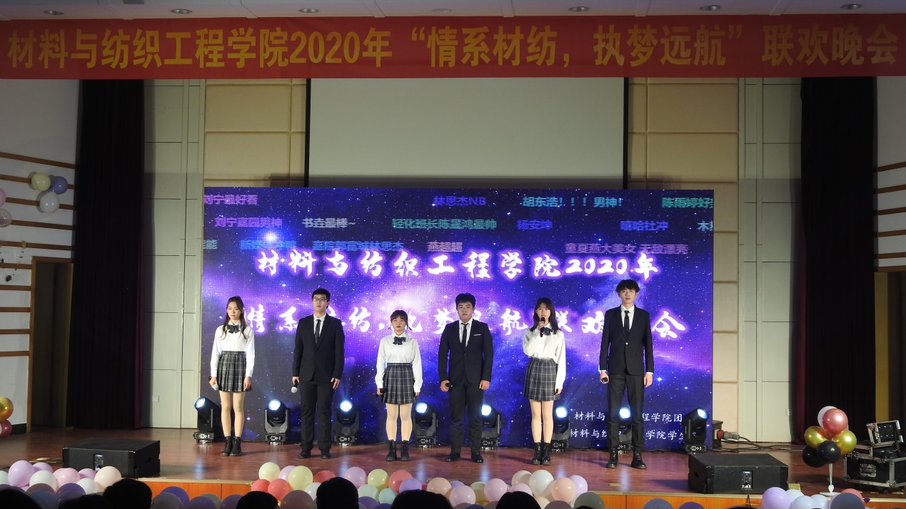 2020年“情系材纺,执梦远航”联欢晚会于梁林校区TCL报告厅举行。学院领导班子、师生代表200余人观看晚会。