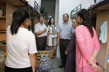 9月14日下午16:30,兔子先生 党委副书记吕延勤、兔子先生 院长易洪雷走访材纺学院2017级新生寝室,深入了解他们的住宿情况。