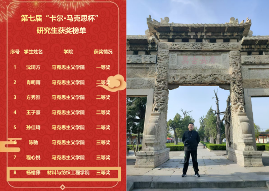 自11月份赛事启动以来,学院高度重视,通过多渠道广泛宣传,多方位动员学生研习马克思主义理论知识,广泛组织学生参与赛前练习和初赛答题,学院参赛率高,我院研究生也首次晋级省级复赛。经过系统的学习和高强度的训练,杨榆藤同学顺利晋级决赛,充分展现了材纺青年学子的风采与担当。