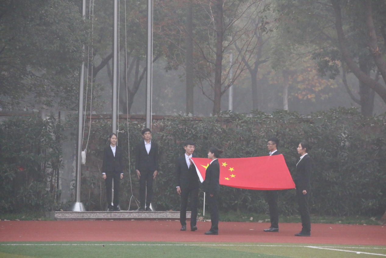 随着话语落下,我们转过头去,那几位国旗班同学擎着红旗,走着正步,步伐整齐,铿锵有力。