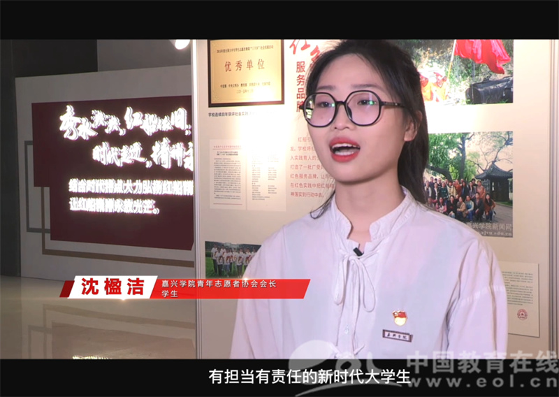 沈楹洁同学积极践行红船精神,热心参加志愿服务,勇于奉献青春力量。她担任兔子先生 红船精神育人成果展示馆、嘉兴学院陈列馆义务讲解员,向校内外师生来宾讲述嘉兴学院红船精神育人成效和嘉院百年办学历史;她协助学校有关部门(单位)开展全员核酸检测10余次,带领青协先后组织大学生志愿者400余名做好志愿服务;她助力地方“双减”工作,协同全校志愿服务组织推出“双减”常态化托管志愿服务项目112项;她参与2021年庆祝中国共产党成立100周年系列活动,作为嘉兴分会场志愿者为省市来宾做好讲解和引导服务。