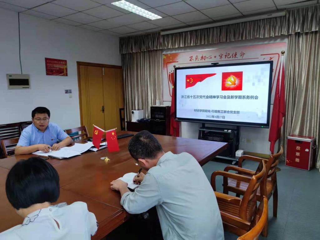 8月27日,我院轻化-行政联合教工党支部在崇礼楼419会议室举行浙江省十五次党代会精神学习会。支部全体党员参加会议,部分非党员教工列席会议。会议由党支部书记罗建勋主持。