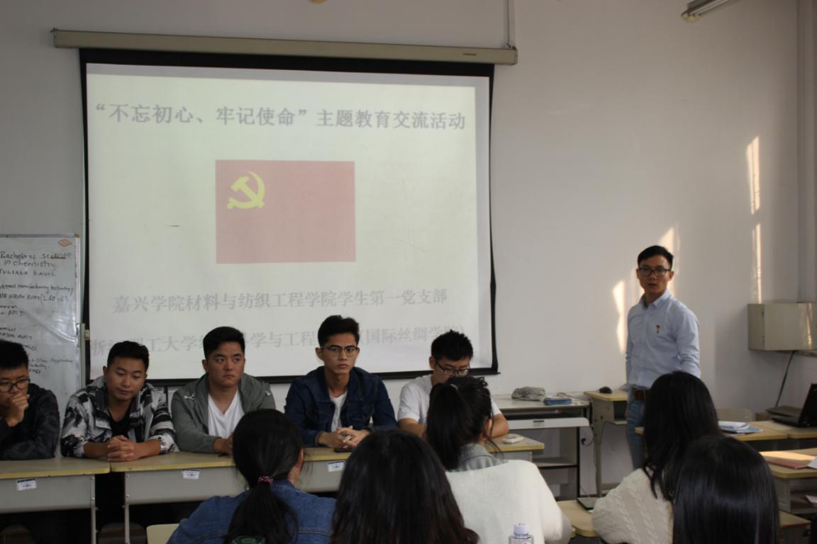 为加强党支部之间协同共建,实现党组织优势互补,共同推进支部“不忘初心、牢记使命”主题教育向纵深发展,10月23日,我院学生第一党支部与浙江理工大学研究生纺织工程第二党支部开展结对共建活动。