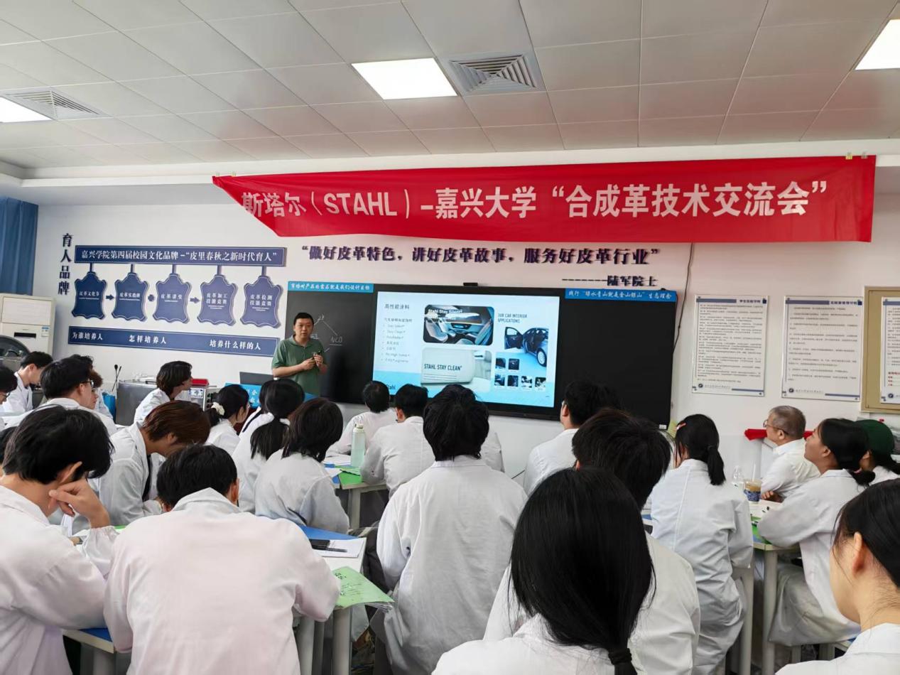 应我院轻化工程专业邀请,斯塔尔精细涂料(苏州)有限公司郭祥经理、夏敏经理一行于5月27日至5月29日访问我院轻化工程专业并给轻化生态合成革班讲授“时尚皮革与合成革现代产业学院”的产业课程之《合成革工艺学》中的“合成革表面处理技术”、《时尚合成革设计与制作》中的“合成革干法与表面处理技术”。活动由罗建勋教授主持,马贺伟副教授、李书卿老师等轻化工程专业教师全程参加。
