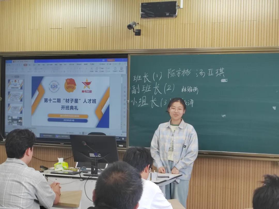 学院第十一期“材子星”人才班优秀学员陆瑜、方秋萱等人一一分享过去一年学习的经验,鼓励新一届学员奋发有为,抓住每一次的学习机会,不断提升自己。