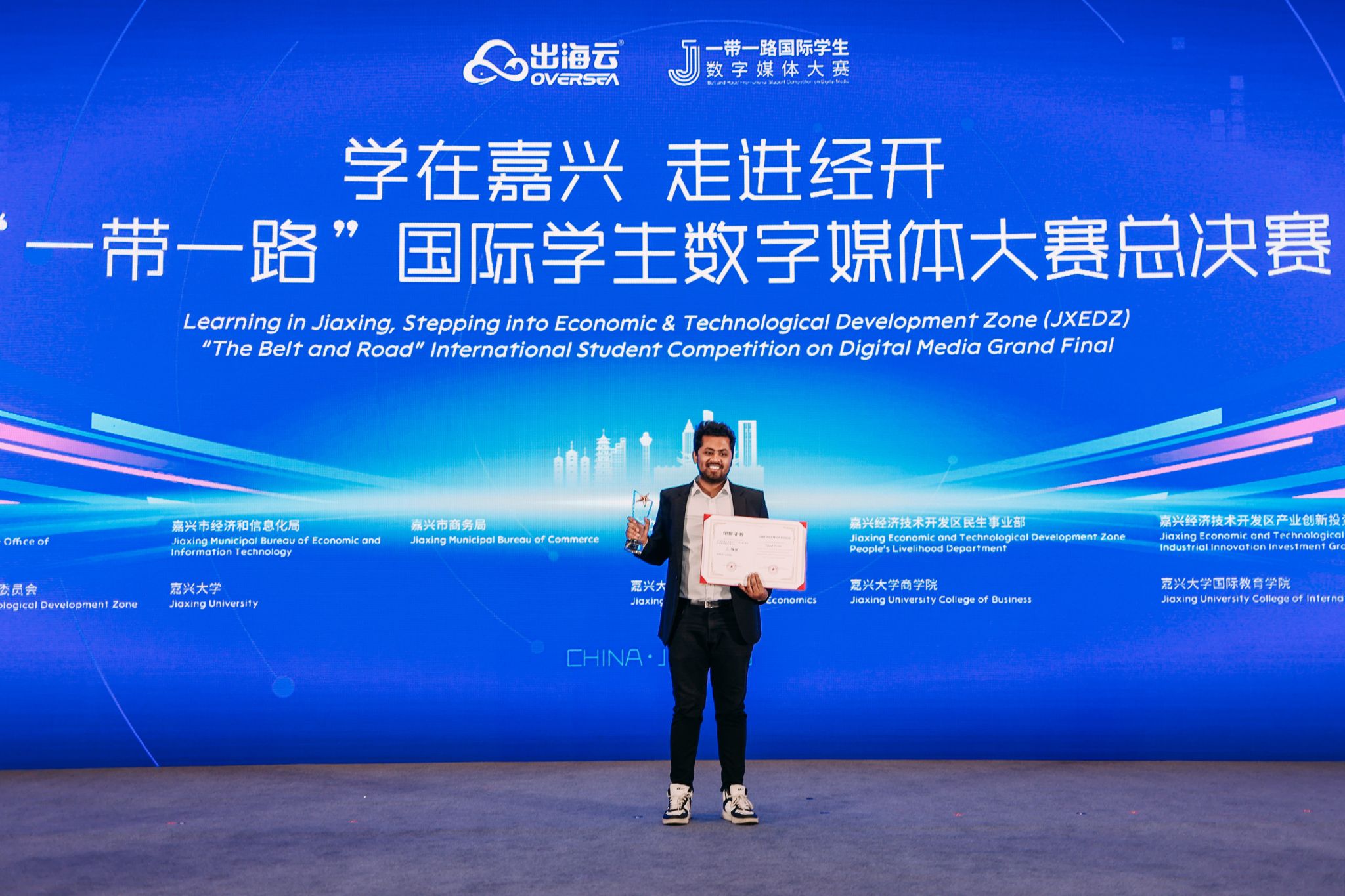 4月27日,由武鲜艳、李艳艳老师指导,我院国际生BM Jelin参加了“学在嘉兴走进经开”首届“一带一路”国际学生数字媒体大赛决赛并获得三等奖。在决赛现场,国际学生BM Jelin以嘉兴纺织产业向孟加拉的推广为主题,讲述了嘉兴纺织产业优势、孟家拉国纺织产业现状,并分析了嘉兴纺织产业在孟家拉国市场推广机遇、挑战及策略。作品获得现场专家的好评。“学在嘉兴走进经开”首届“一带一路”国际学生数字媒体大赛由兔子先生