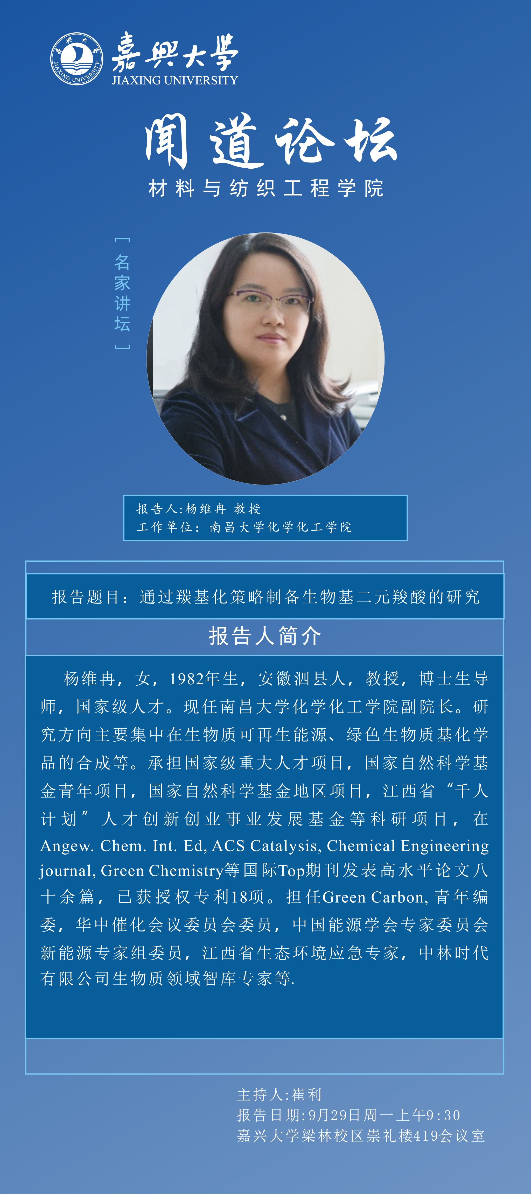 【学术预告】闻道论坛第4讲:通过羰基化策略制备生物基二元羧酸的研究